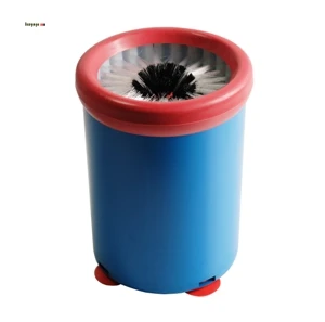 外觀是塑料製成的圓筒,美觀優雅。內有刷毛可洗杯子內外兩邊,好刷耐用,下有吸盤,方便固定。